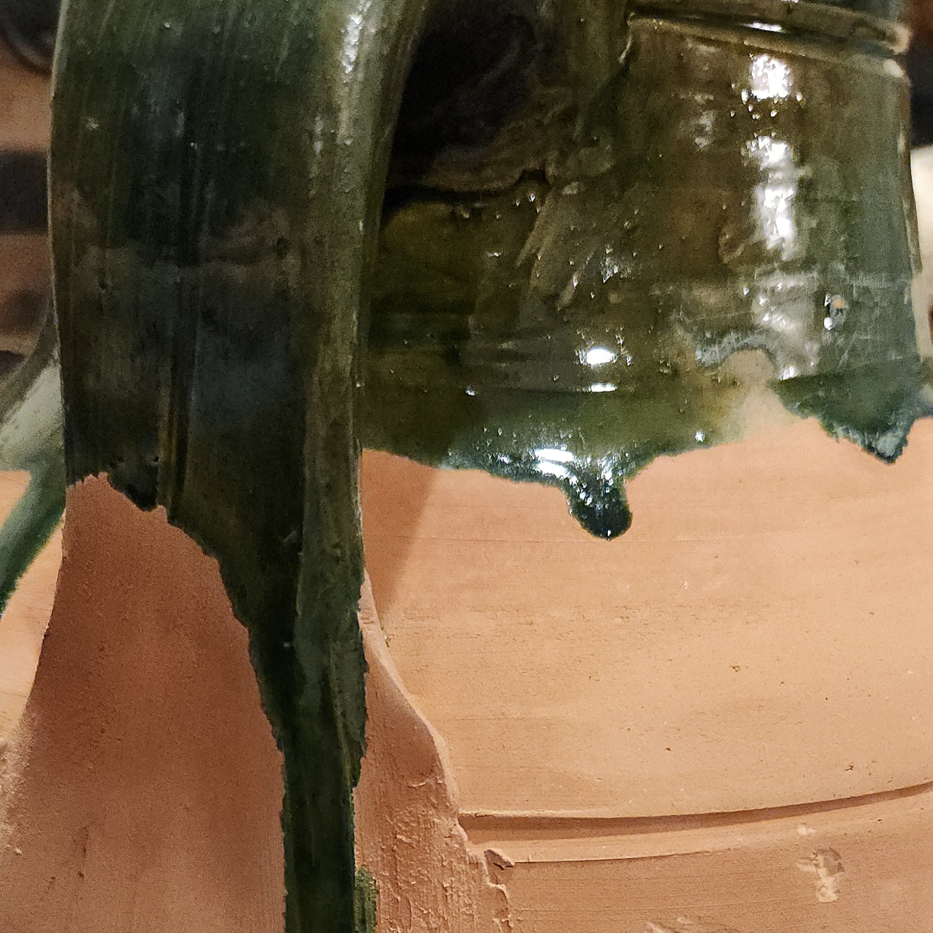 Terracotta Olive Jar with Dark Green Drip Glaze